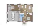Проект включает две спальни и одну ванную комнату, что делает его идеальным выбором для небольших семей. При этом общая площадь позволяет обустроить дополнительные помещения по вашему желанию. Просторная планировка обеспечивает комфортное проживание и свободное перемещение по дому.